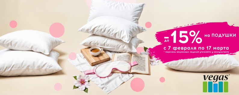 АКЦИЯ на подушки VEGAS c 7 февраля по 17 марта (Акция завершена)