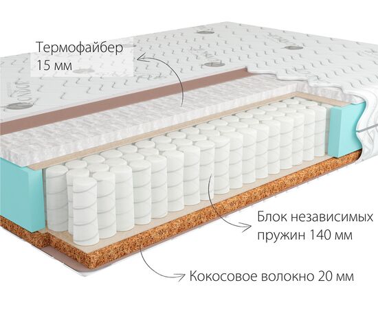 Использованные в этой модели материалы – термофайбер и кокос, заботятся не только о правильной поддержке позвоночника, но и о других факторах, влияющих на здоровье. Они не вызывают аллергии, не накапливают влагу и хорошо пропускают воздух.