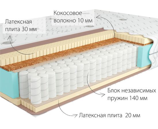 Мягкий матрас с настилами из натурального латекса. Эластичность и упругость этого материала создают высокую степень комфорта и ощущение уюта, что способствует хорошему отдыху. Мягкие матрасы, как правило, рекомендуются людям средней комплекции.