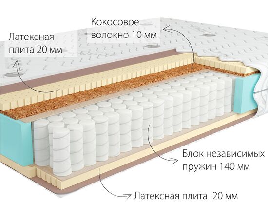 Современный матрас средней жесткости на блоке независимых пружин. Модель привлекательна своей долговечностью и практичностью. Лучшие свойства натуральных материалов – латекса и кокосового волокна обеспечат длительное и приятное пользование этим матрасом.