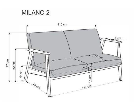 Диван HALMAR MILANO 2S tap. Castel 93 серый/орех