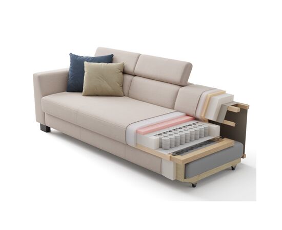 Космо - брутальный прямой диван, который имеет просторное спальное место, стильные опоры, регулируемые подголовники и является отражением скандинавского стиля. Рамочная конструкция из деревянного бруса, усиленного многослойной фанерой, гарантирует долгий срок службы дивана, а надежный механизм трансформации «Дельфин» обеспечивает ровную спальную поверхность без перепадов по высоте.