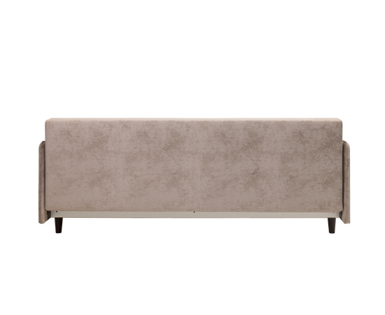 Еврософа - для трансформации из положения «диван» в положение «кровать» достаточно нажать сверху вниз на край спинки дивана, плавно опускаясь, спинка принимает горизонтальное положение. Для трансформации из положения «кровать» в положение «диван» необходимо потянуть вверх раму спинки.