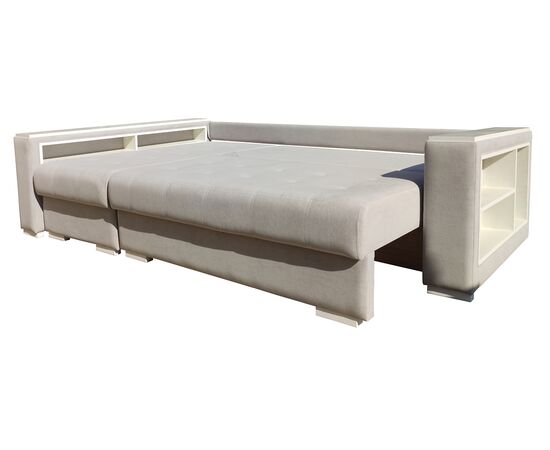 Дельфин раскладка вдоль, подходит для использования на каждый день. Чаще применяется для угловых диванов: из-под сиденья выдвигается дополнительная мягкая площадка, затем минимальным усилием она поднимается на один уровень с сиденьем.