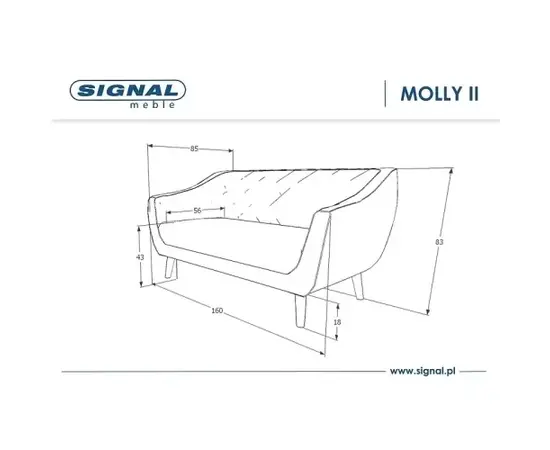 Диван SIGNAL MOLLY 2 Velvet Bluvel 40 темно-бежевый/венге