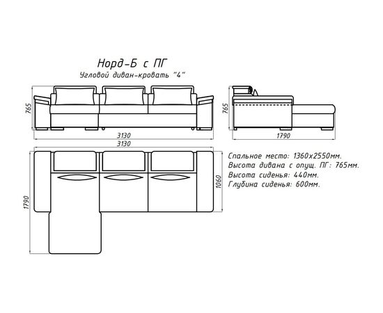 Диван угловой Норд-Б 22НрБ-10 (ткань Verona-CH 724, с ПГ)