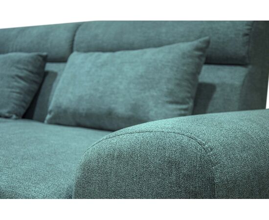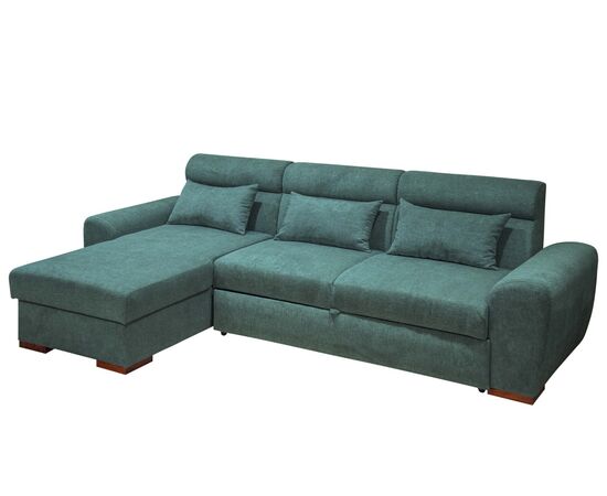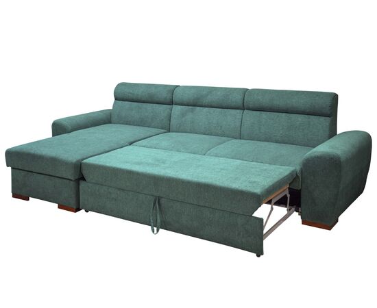 Под угловой частью дивана расположен вместительный ящик для хранения постельных принадлежностей, доступ к которому обеспечивается с помощью подъемного механизма.