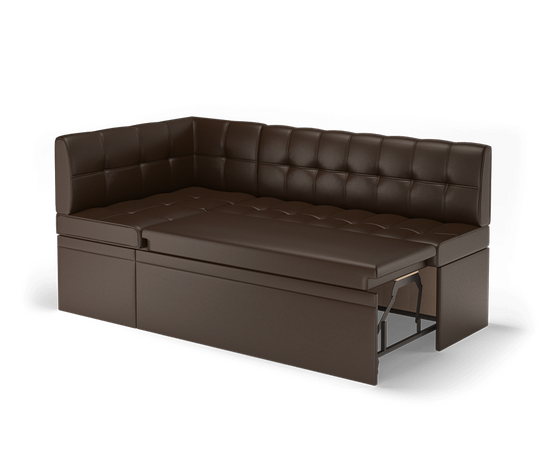 Поворотный – угловой диван раскладывается путем поворота подвижной части на 90 градусов параллельно стационарной части и фиксируется специальным зацепом.