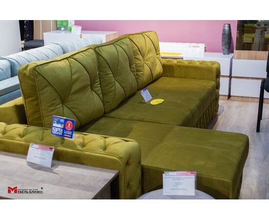 Поворотный – угловой диван раскладывается путем поворота подвижной части на 90 градусов параллельно стационарной части и фиксируется специальным зацепом.