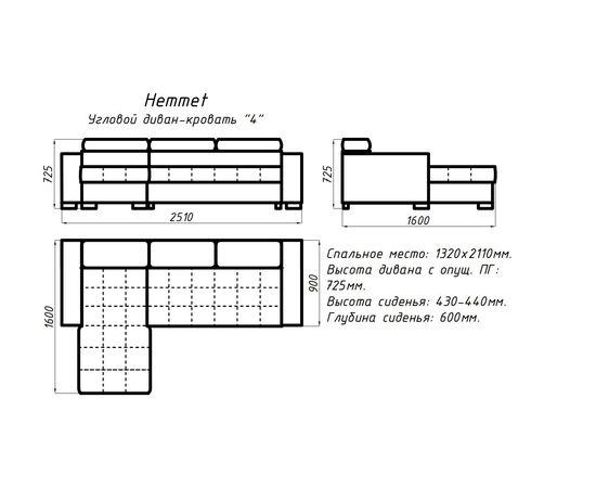 Поворотный – угловой диван раскладывается путем поворота подвижной части на 90 градусов параллельно стационарной части и фиксируется специальным зацепом.