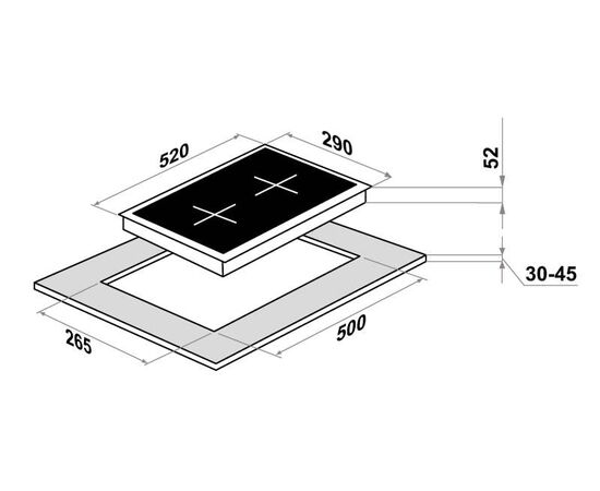 Электрическая встраиваемая варочная панель шириной 30 см выполнена из ударопрочной стеклокерамики черного цвета. Благодаря идеальной гладкости и высокой износостойкости она легко очищается.