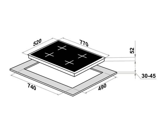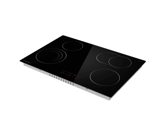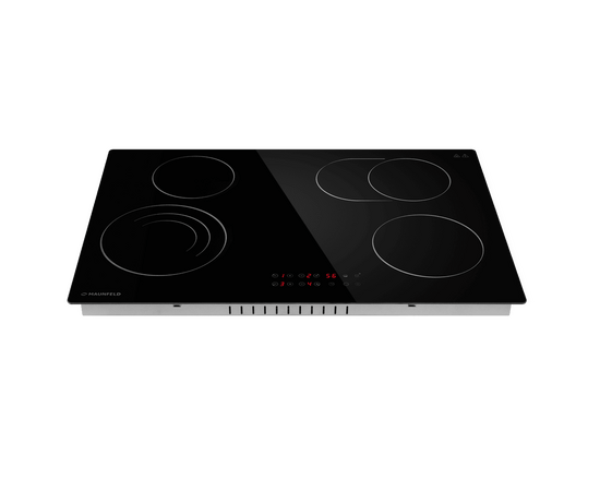 Стильная электрическая встраиваемая варочная панель шириной 77 см выполнена из ударопрочной стеклокерамики черного цвета. Благодаря идеальной гладкости и высокой износостойкости она легко очищается.