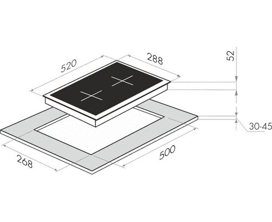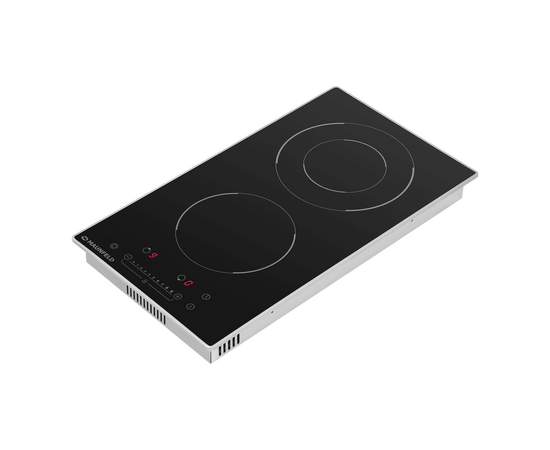 Компактная электрическая встраиваемая варочная панель на 2 конфорки шириной 30 см выполнена из ударопрочной стеклокерамики черного цвета с элегантной металлической окантовкой по периметру, которая служит для защиты от сколов на торцах и не дает жидкости, убежавшей при готовке попасть на столешницу. Поверхность устойчива к появлению царапин, легко очищается с помощью мягкой губки и моющего средства или специального скребка.