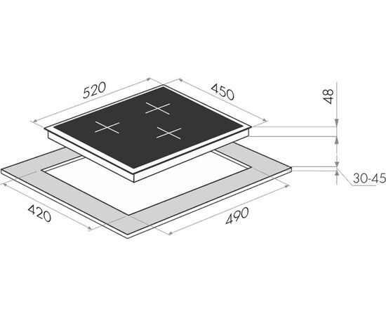 Компактная электрическая встраиваемая варочная панель шириной 45 см выполнена из ударопрочной стеклокерамики черного цвета производства EuroKera (Франция). Благодаря идеальной гладкости и высокой износостойкости она легко содержится в чистоте.