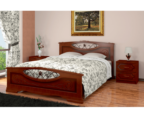Кровать Елена-5 без основания с элементами художественной ковки (орех)