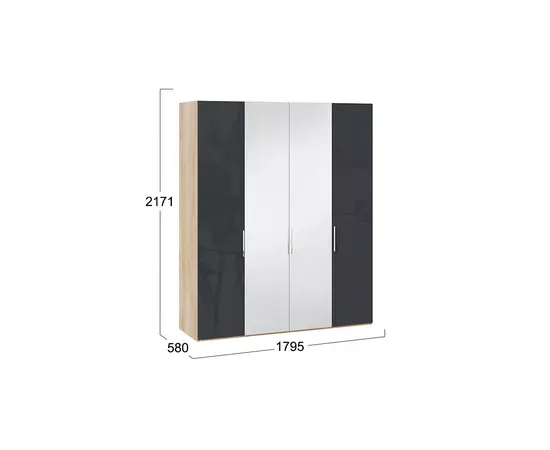 Эмбер СМ-348.07.013 Шкаф комбинированный с 2 глухими и 2 зеркальными дверями (яблоня беллуно/графит глянец)