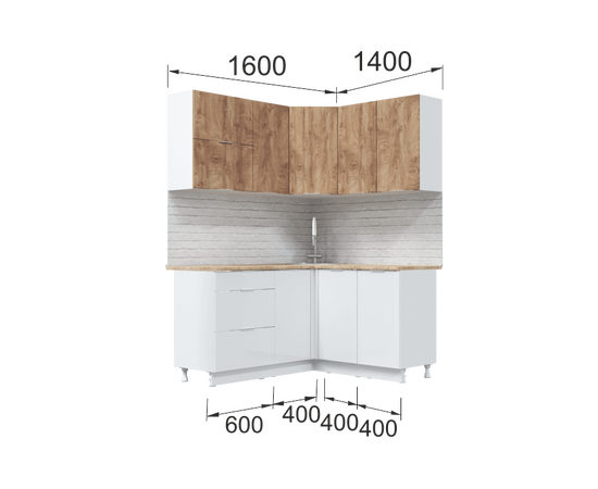 Гарнитур кухонной мебели Асти-вайт угловой 1,4*1,6 (охотская листв./белый гл) (охотская листв./белый гл)