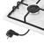 Регулирование подачи газа и электроподжиг конфорок происходит с помощью поворотных ручек из термостойкой пластмассы. Для простоты использования около каждой ручки нанесены информационные изображения: используемая конфорка, подача газа выключена, электроподжиг, максимальное пламя и минимальное пламя.