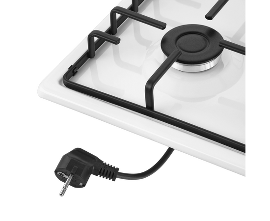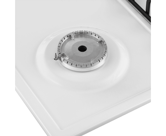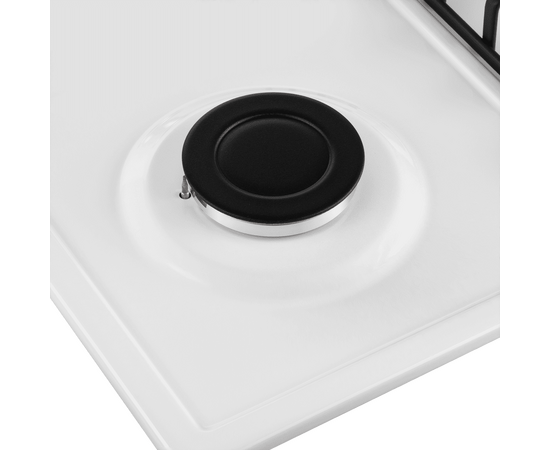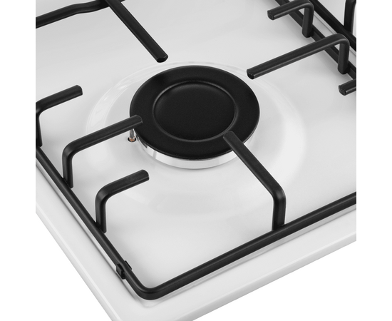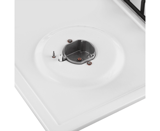 Панель выполнена из металла, покрытого термостойкой прочной эмалью белого цвета. Четыре стандартные конфорки мощностью 1000 Вт, 1700 Вт, 1700 Вт и 2600 Вт. Конфорки спроектированы таким образом, что огонь не перегревает ни эмалированные решетки, ни ручки управления.
