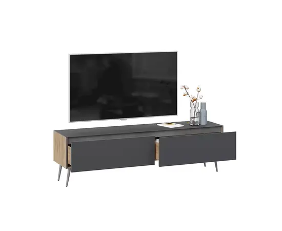 Глосс СМ-319.03.011 Тумба для теле-и радиоаппаратуры с опорами (яблоня беллуно/стекло графит матовый/серый)