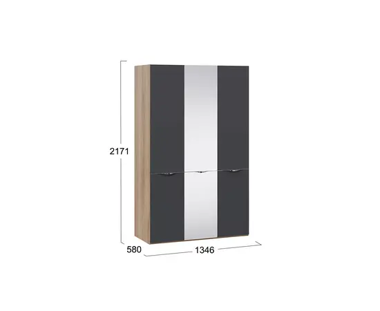 Глосс СМ-319.07.432 Шкаф комбинированный с 2 дверями со стеклом и 1 зеркальной (яблоня беллуно/стекло графит матовый)