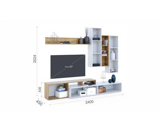 Высота и ширина стенки зависит от расположения навесных модулей.