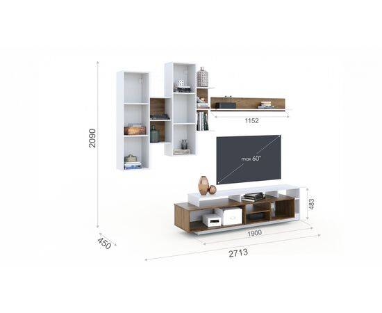 Высота и ширина стенки зависит от расположения навесных модулей.