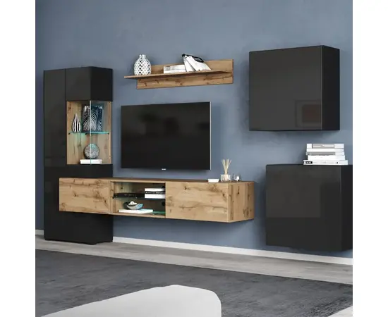 Гостиная Point ТИП-70 (дуб вотан/ чёрный глянец - 71774993)