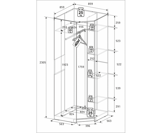 Харрис 63 (спальня) Шкаф угловой КОРПУС (белый)