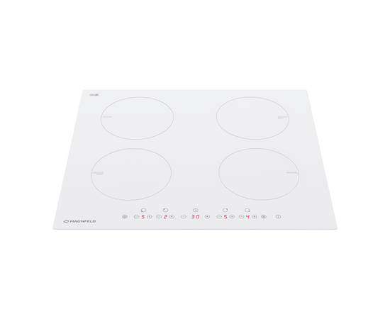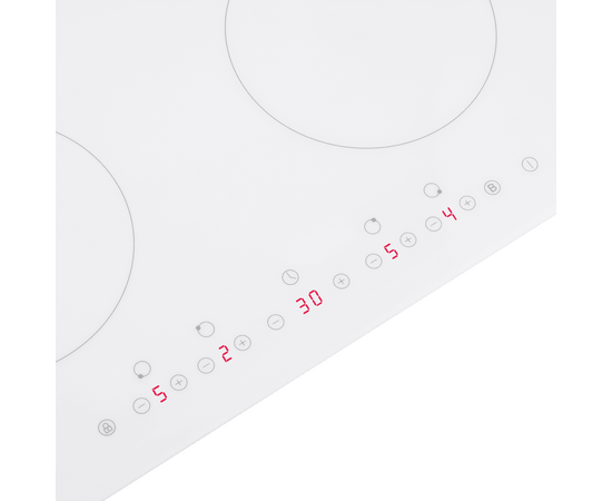 Индукционная варочная панель шириной 59 см выполнена из жаропрочного стекла SCHOTT Ceran (Германия) белого цвета. Стеклокерамика не только отличается высокими показателями качества, но и легко очищается.