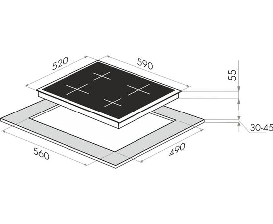 Индукционная варочная панель шириной 60 см выполнена из жаропрочного износостойкого стекла черного цвета. Стеклокерамика не только отличается высокими показателями качества, но и легко очищается.