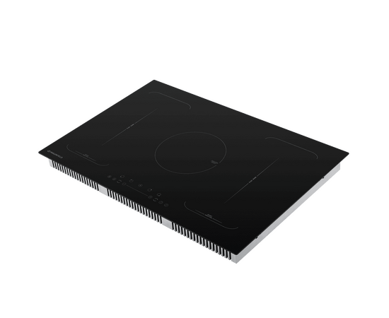 Мощная индукционная встраиваемая варочная панель черного цвета шириной 77 см выполнена из износостойкого и жаропрочного стекла. Стеклокерамика не только отличается высокими техническими показателями, но и легко очищается.
