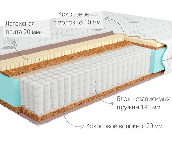 ысота 140 мм,Кокосовое волокно 10 мм, Латексная плита 20 мм,Кокосовое волокно 20 мм,Жаккардовая 51