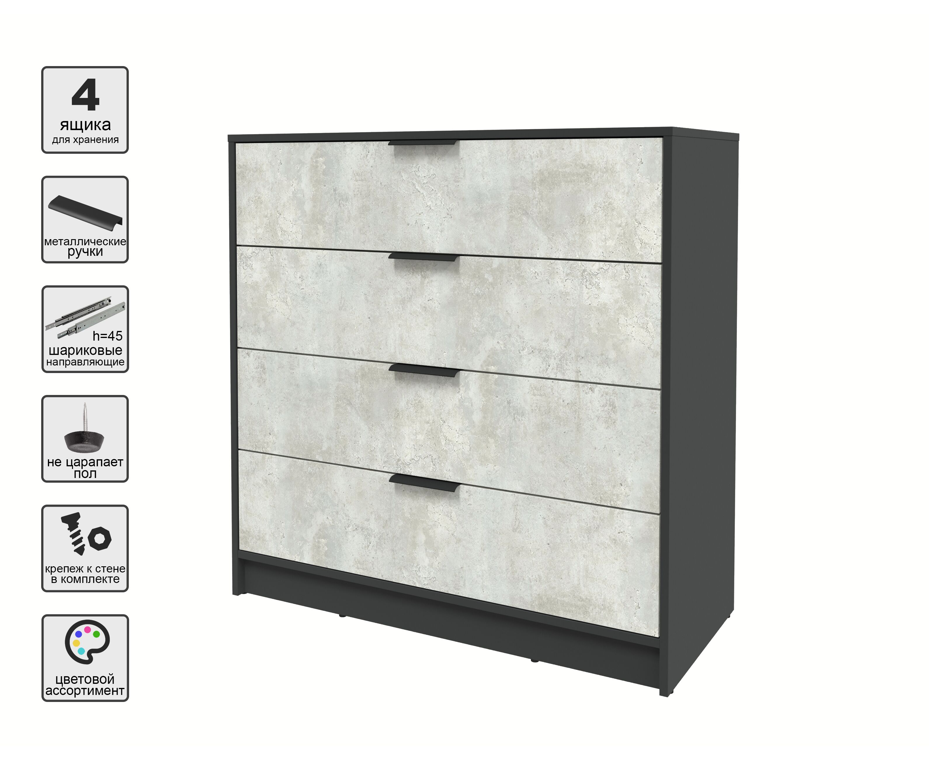 Комод КТ-К100 Концепт (антрацит/бетон лайт)