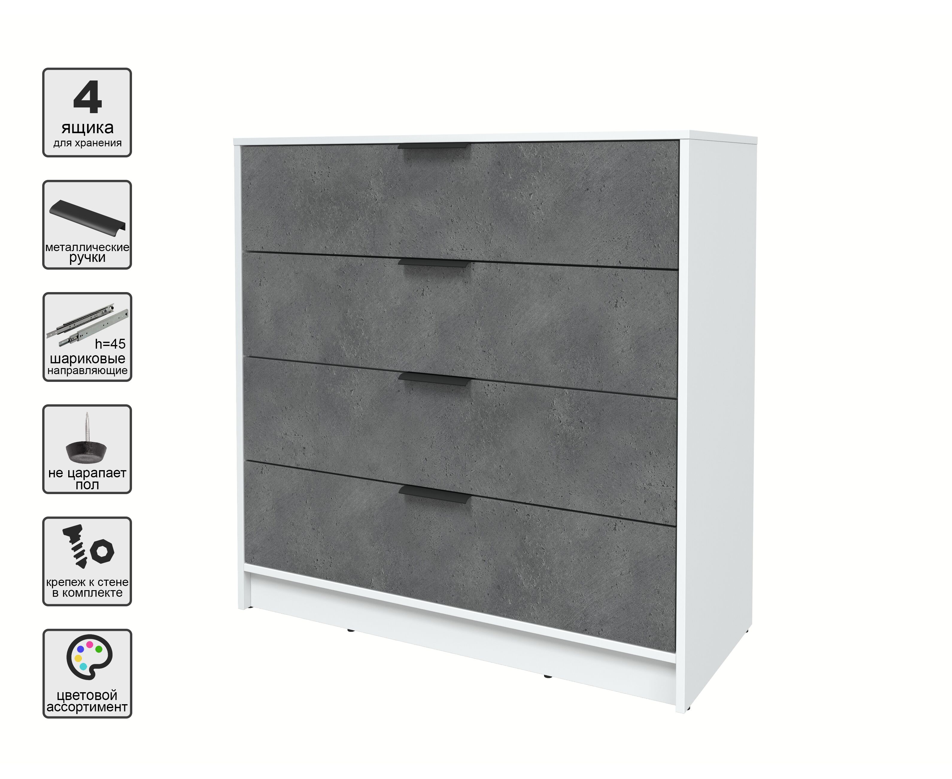 Комод КТ-К100 Концепт (белый/бетон портленд)