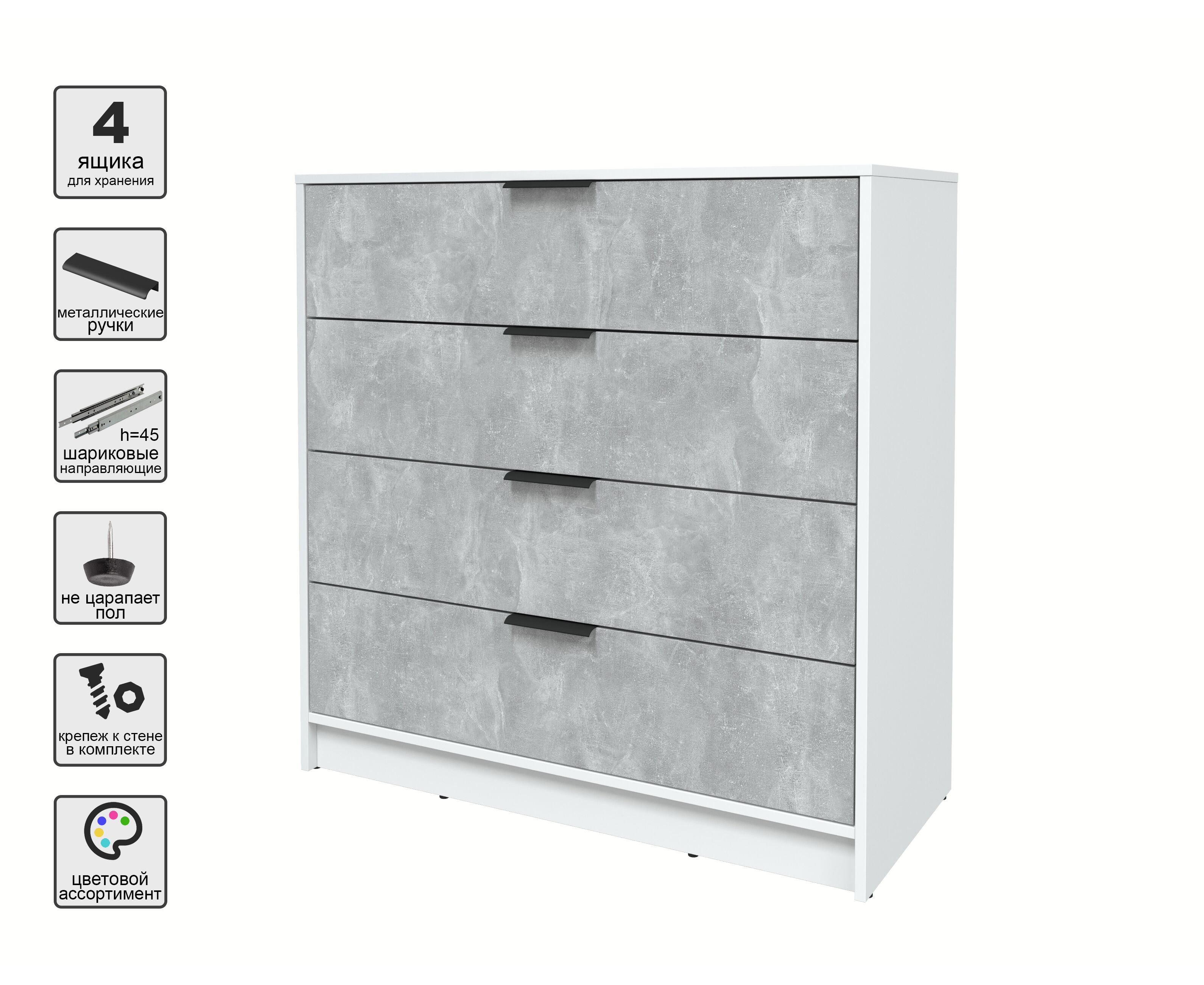 Комод КТ-К100 Концепт (белый/бетон)