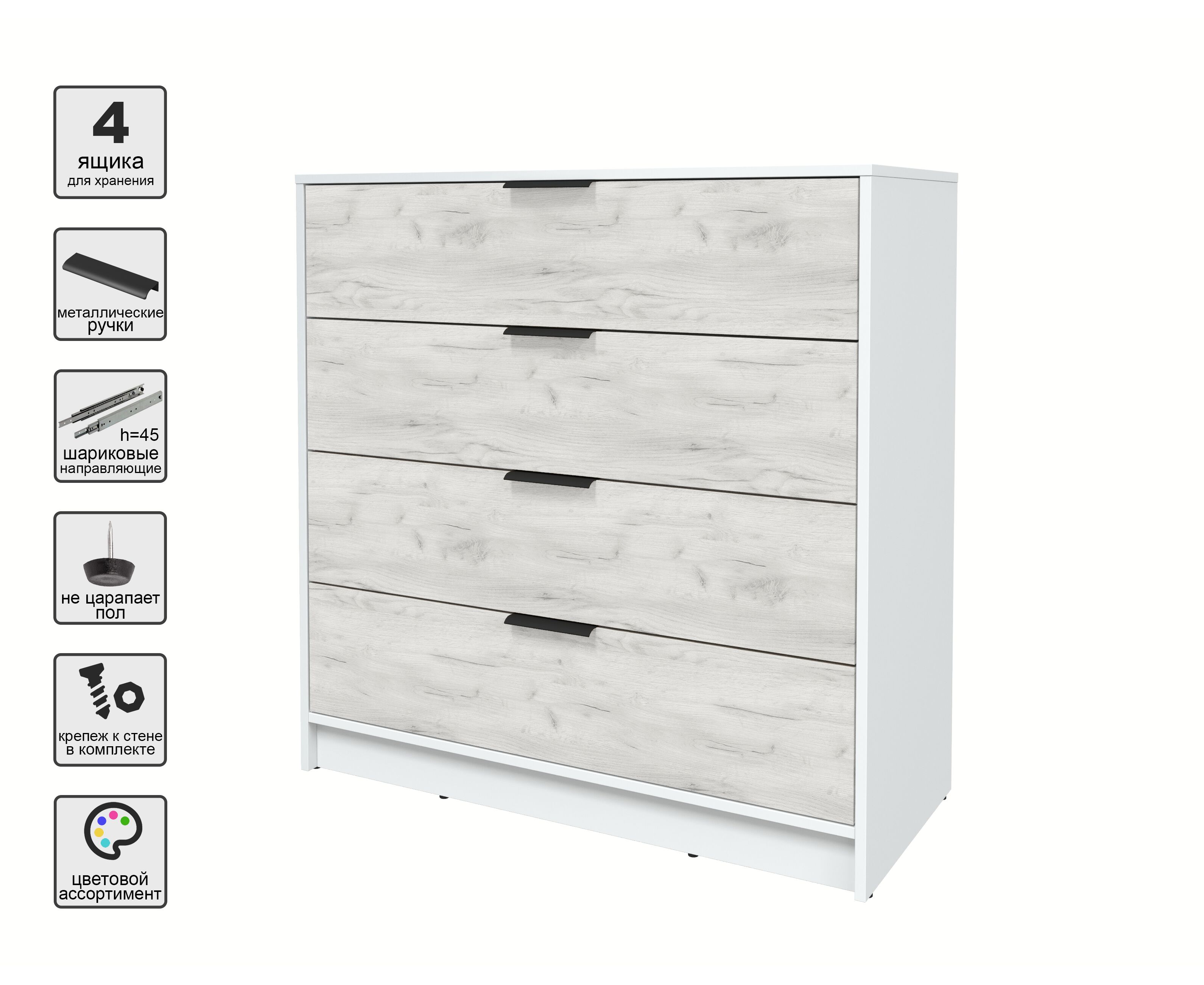 Комод КТ-К100 Концепт (белый/дуб белый)