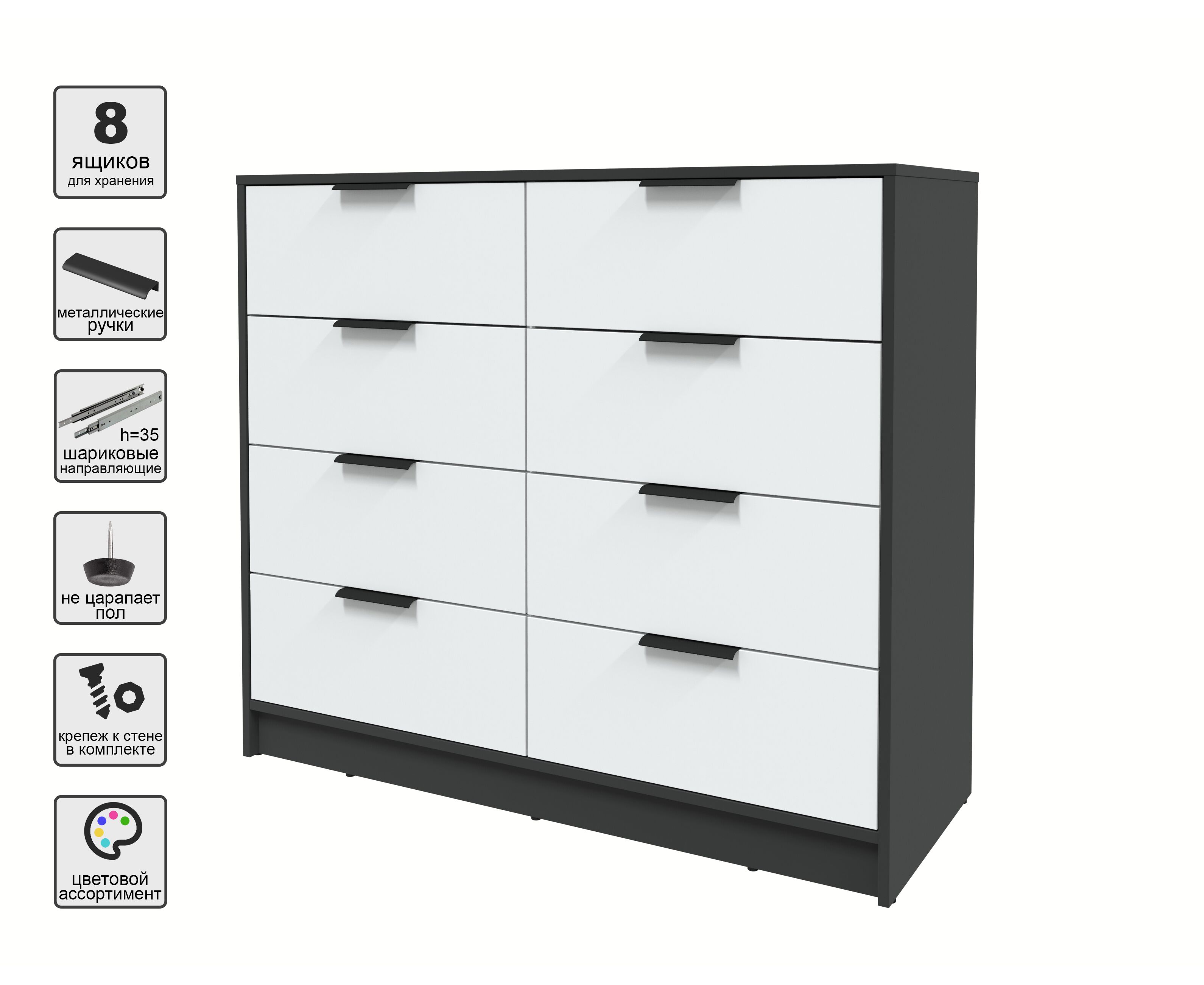 Комод КТ-К117 Концепт (антрацит/белый)