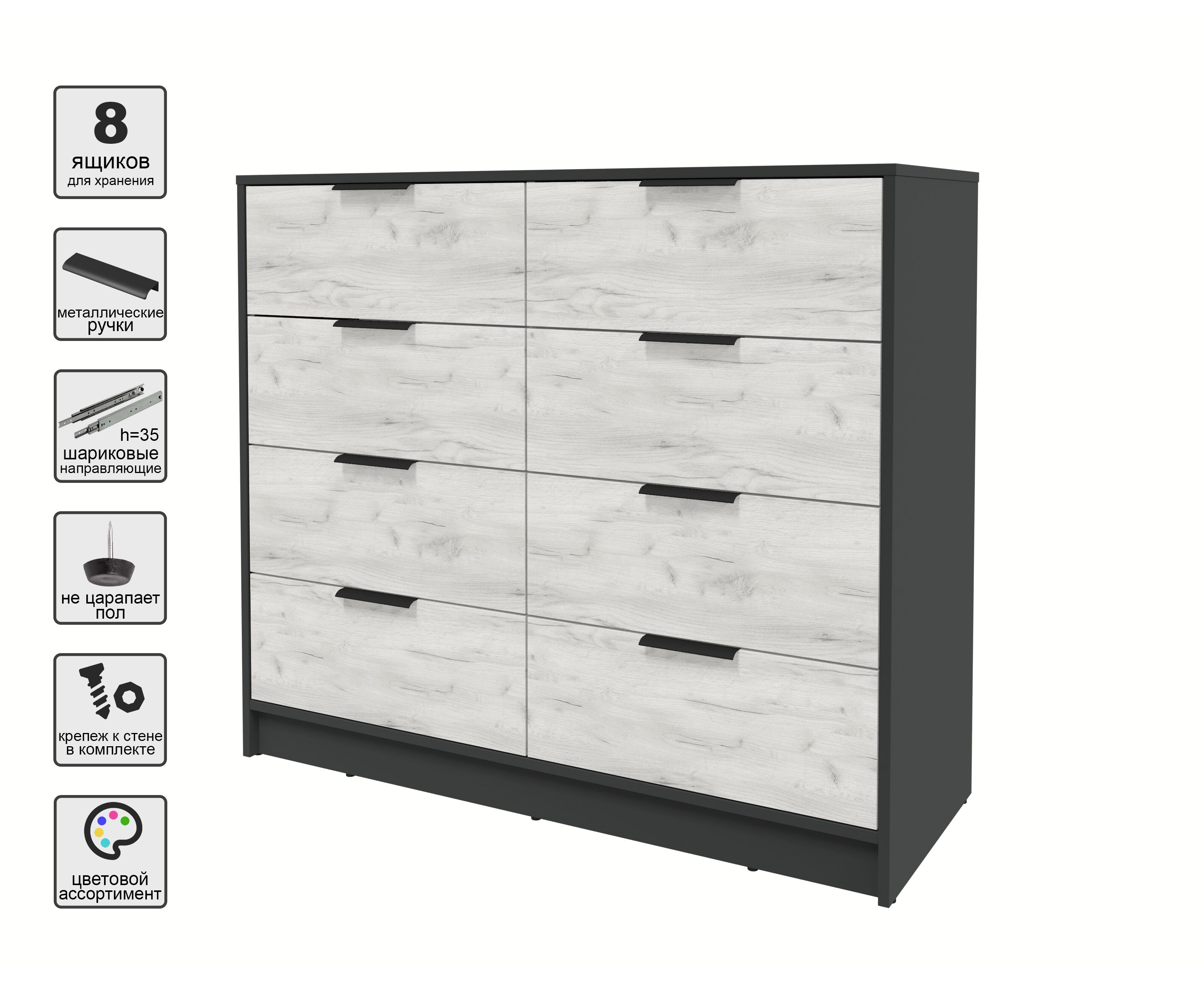 Комод КТ-К117 Концепт (антрацит/дуб белый)