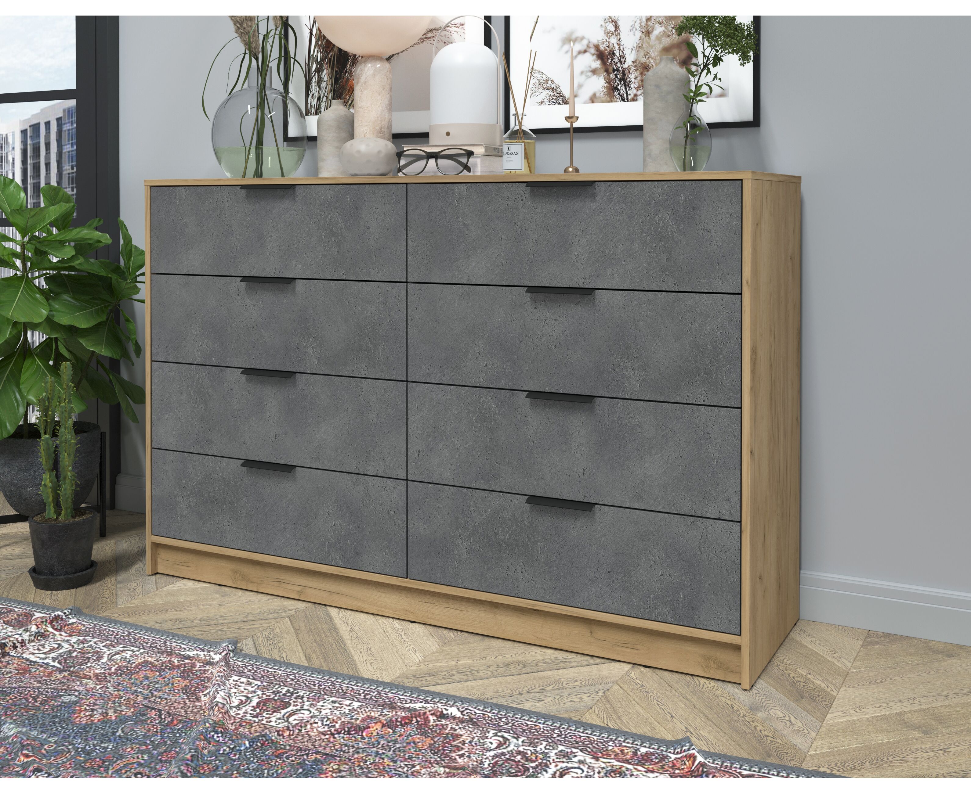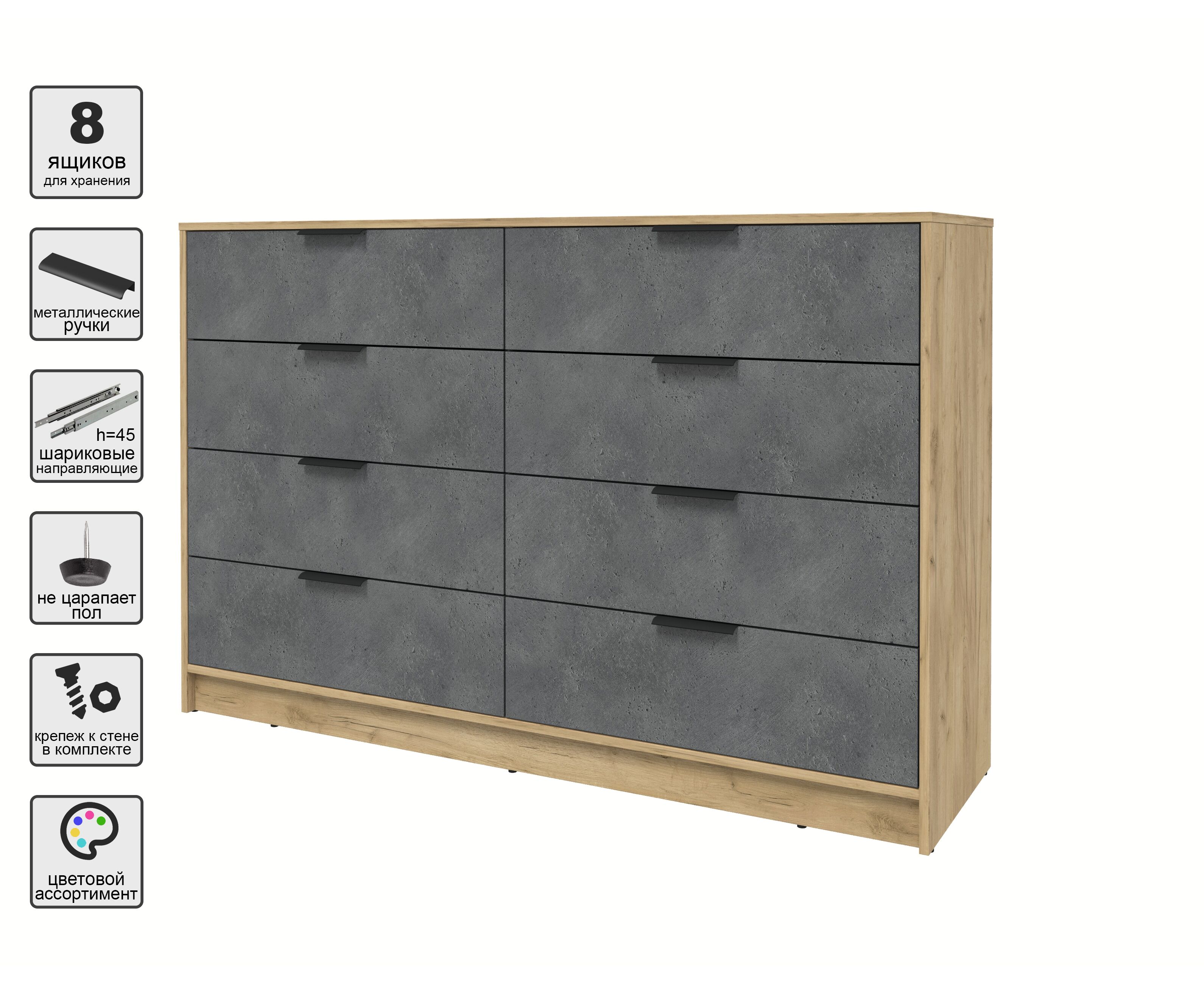 Комод КТ-К157 Концепт (дуб золотой/бетон портленд)
