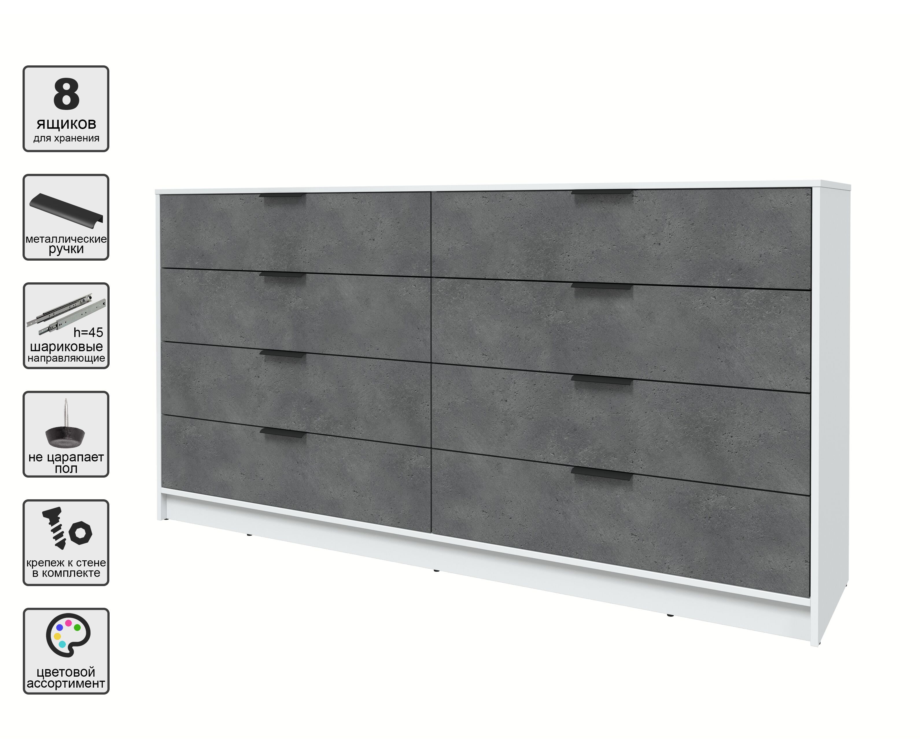 Комод КТ-К197 Концепт (белый/бетон портленд)