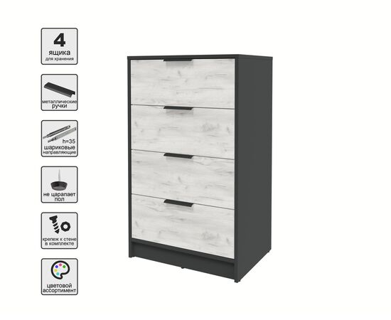 Комод КТ-К60 Концепт (антрацит/дуб белый)