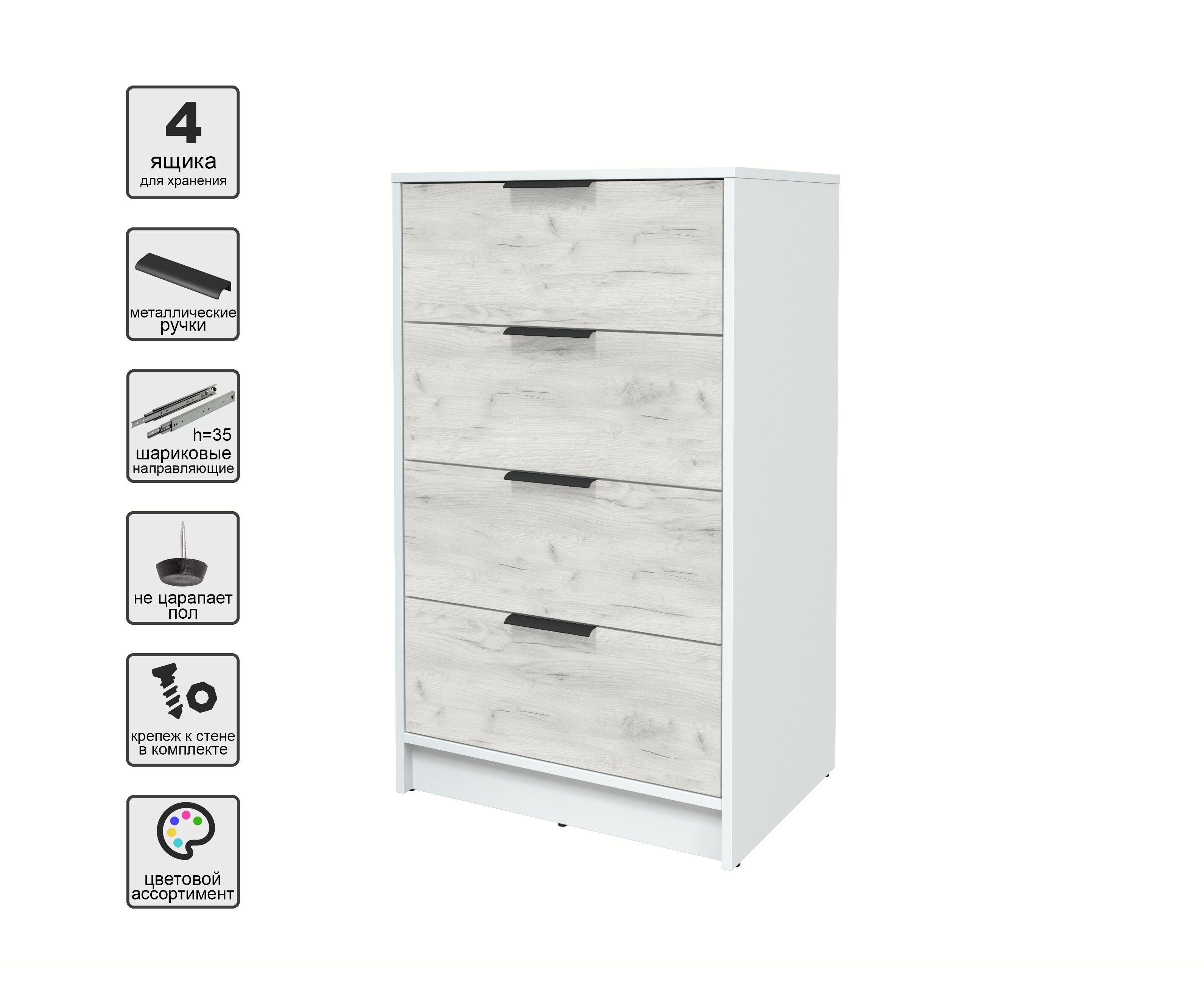 Комод КТ-К60 Концепт (белый/дуб белый)