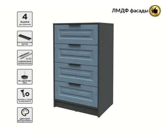Комод КТ-К60 (Деко) Концепт (антрацит/дуб лазурный)