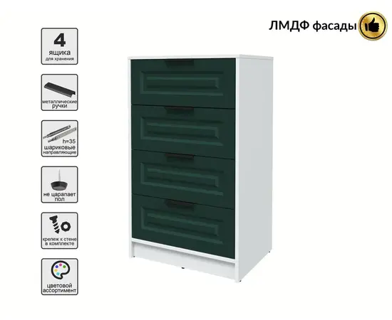 Комод КТ-К60 (Деко) Концепт (белый/изумруд)