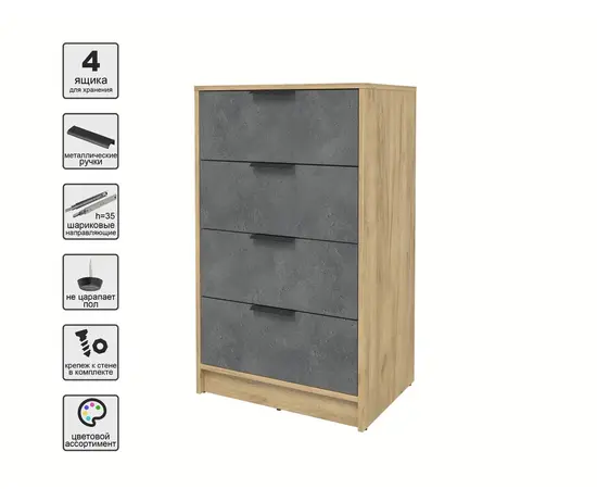 Комод КТ-К60 Концепт (дуб золотой/бетон портленд)