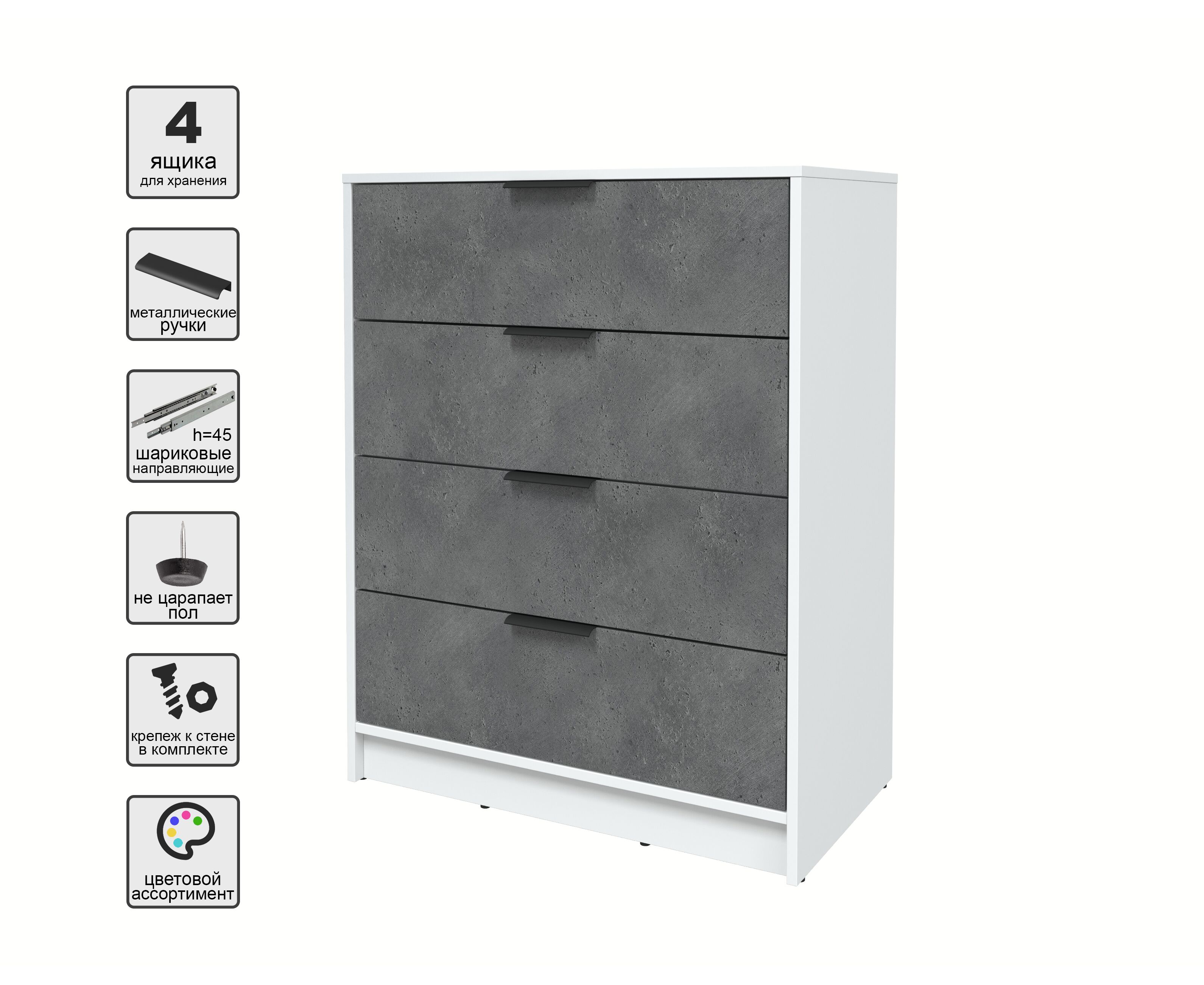 Комод КТ-К80 Концепт (белый/бетон портленд)