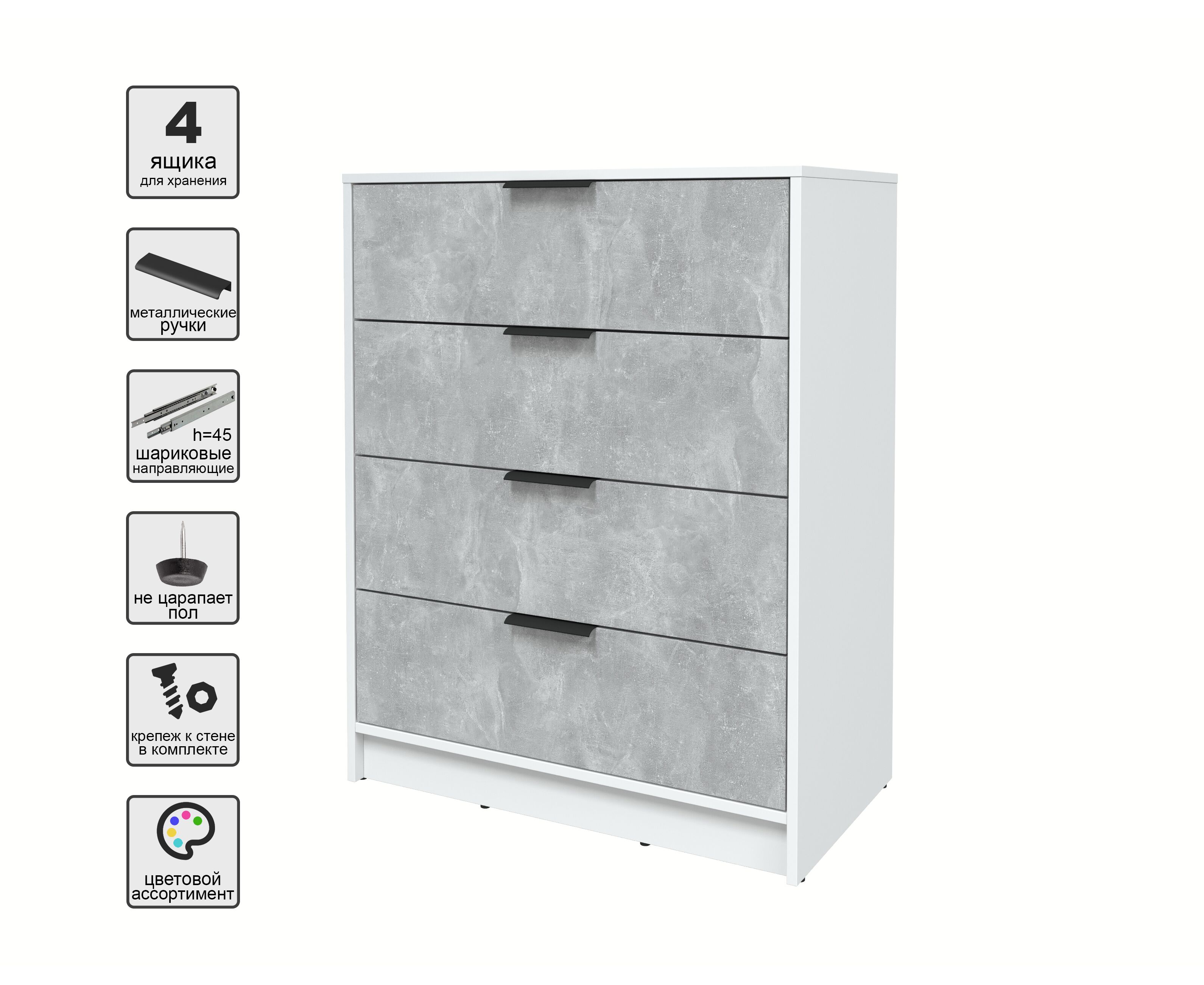 Комод КТ-К80 Концепт (белый/бетон)