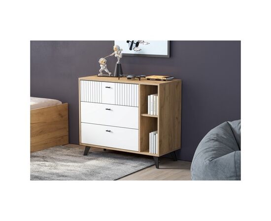 Комод Милан (3 ящика, дуб золотой/белый матовый)