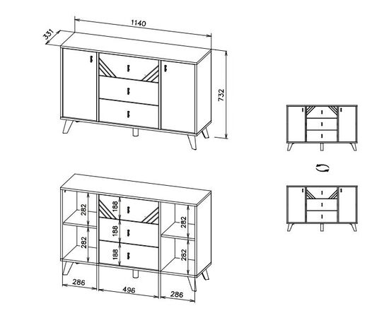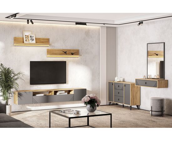 Комод NN Мебель (МС Байкал К) Дуб Золотой/Графит, 3 ящика 2 створки